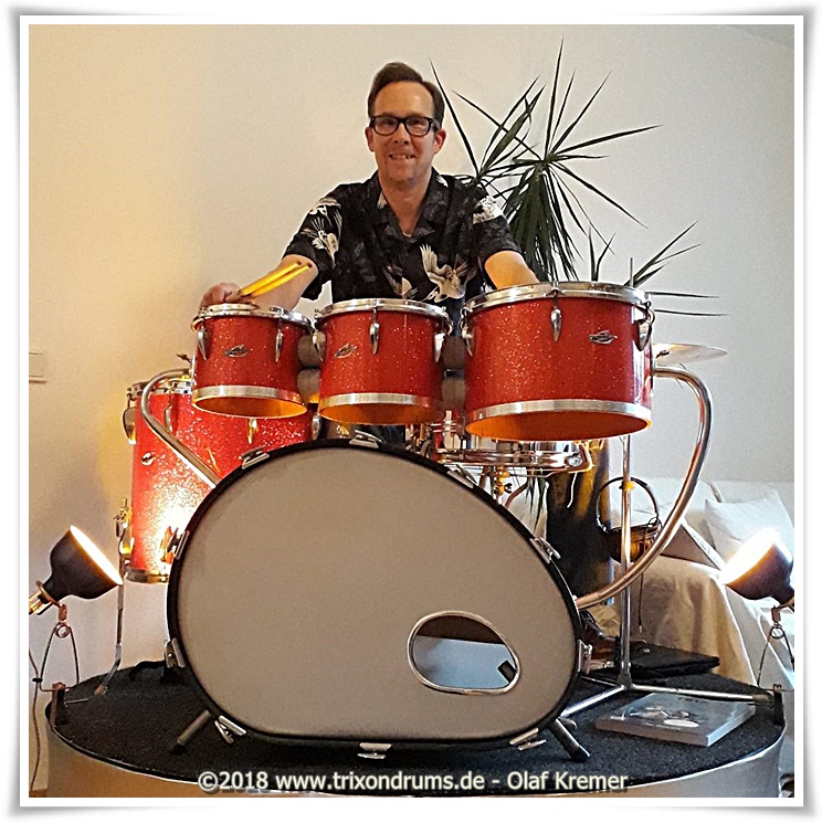 in red sparkle Do you also have your own stage in your living room? in black pearl - early 1960's and some more drums in aquamarine sparkle - early 1960s Please meet Olaf @ FACEBOOK